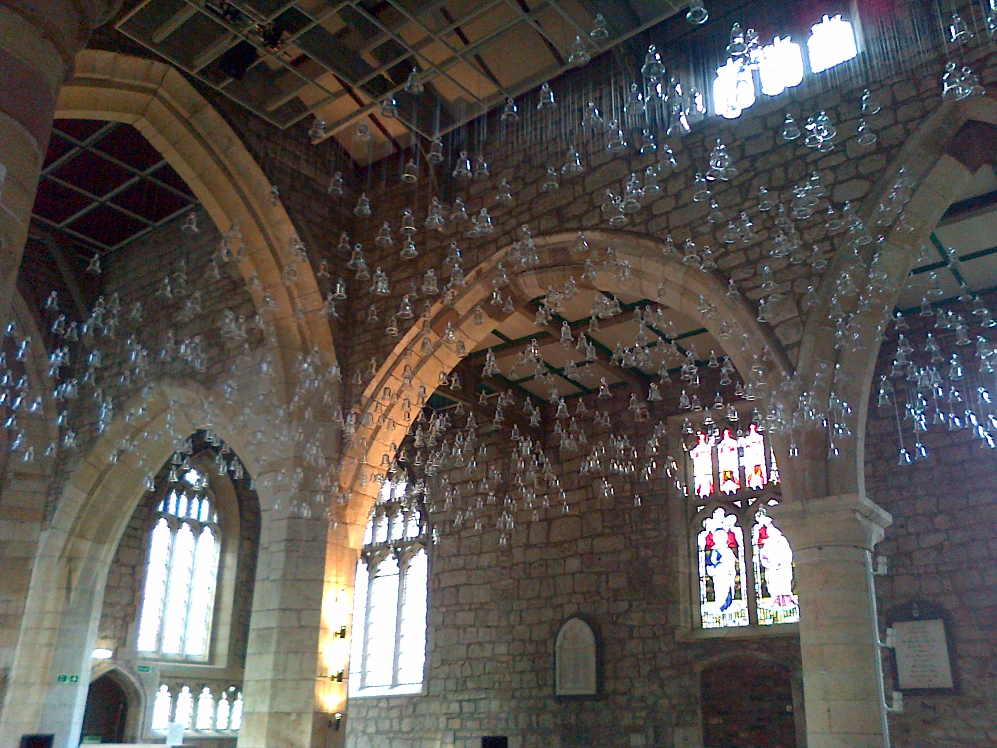 Bells can be stunning for their sound and for their imagery. Brazilian artist Laura Belém took this to new levels with her dramatic work “1000 Bells” which was exhibited in York St Mary’s in 2012 as part of her work for the Liverpool Biennial. Find out more on this great art work via the YouTube clip and weblinks below this photo from 2012.