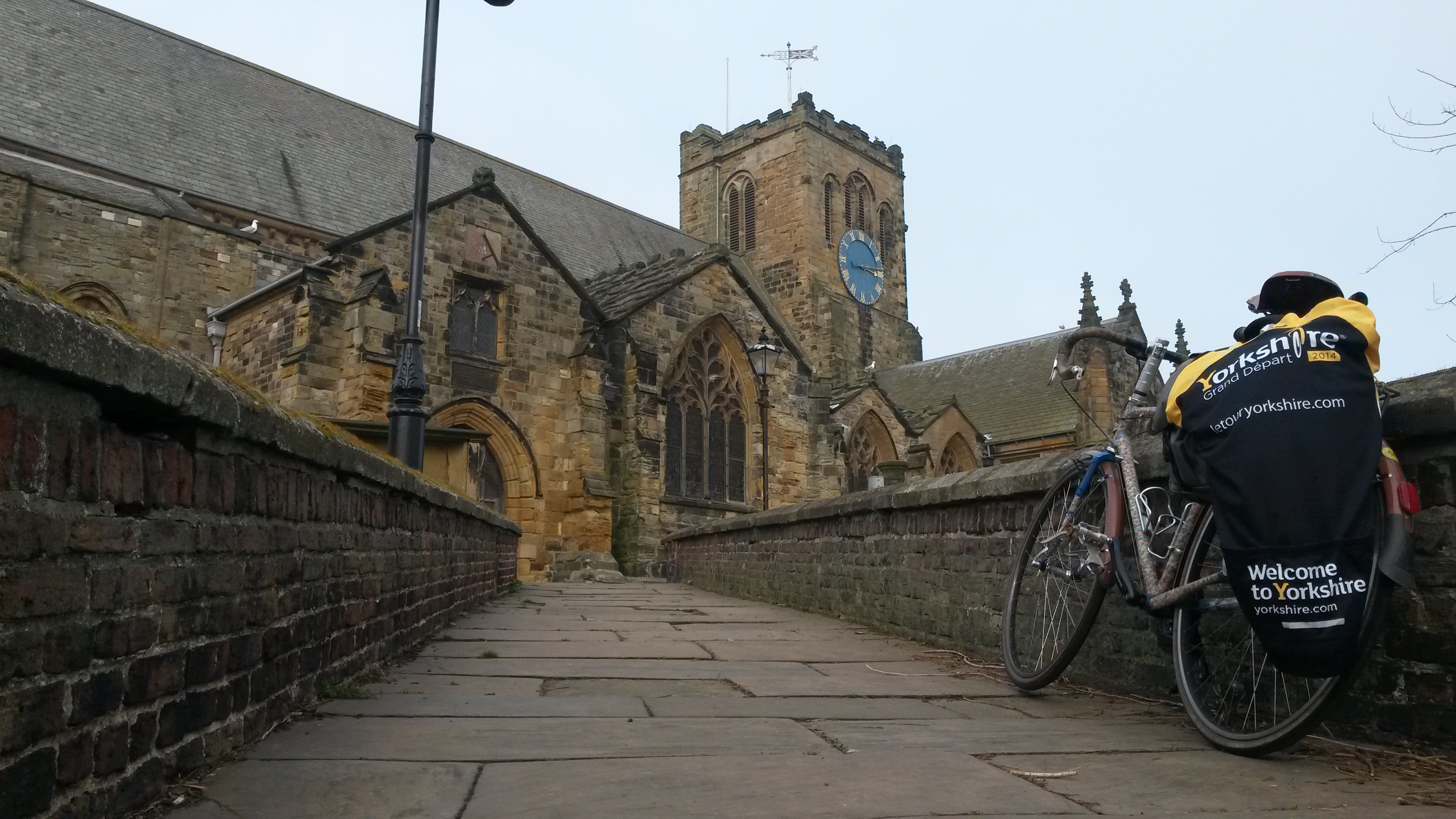 The 2016 Tour de Yorkshire comes to a grand conclusion by the sea with the Stage 3 finish in Scarborough. The resort also played host to a 2015 stage finish and to the Y15 Yorkshire Tourism Event. Here’s 4 photos of bike action in Scarborough from my visit to Y15 and to the beautiful hilltop church. For the afficionados of the Spring Classics or of the Ronde Van Calderen in Calderdale there’s some cobbles on the climb up to the church!