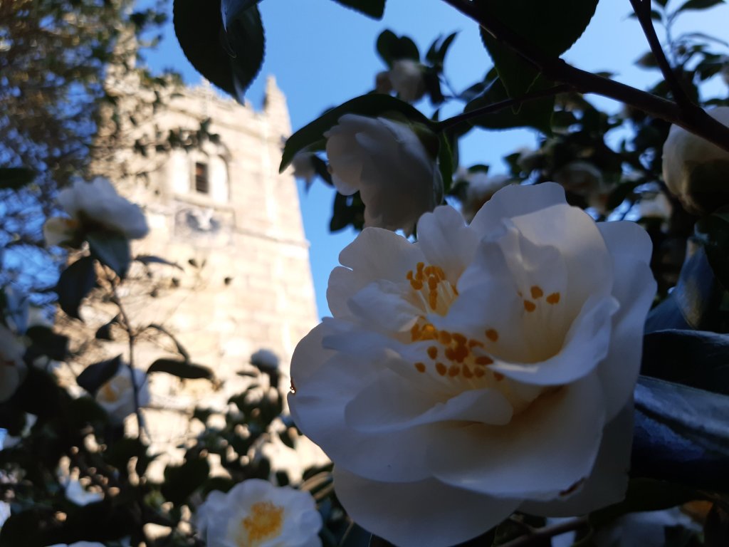 Thank you to the bands at Phillack, Towednack and Gulval for welcoming me to join them for Sunday service ringing at the start of our half term holiday in St Ives, Cornwall. With ringing at 8.45, 9.45 and 10.30 you can ring the full half hour at each church and still be back in St Ives with an hour to spare for browsing the Cornish pasties before lunch. When they popped a bottle of white wine on the stairs up to the belfry at Phillack I wondered for a moment what the plan was, but it turns out the stairs are the “wine chiller” ready for practice night. Towednack looked to have had red at their last practice 🙂 A touch of grandsire was very nice at Gulval and the colours of the camelias in the churchyard were breathtaking. Thank you. I had a fabulous morning ringing with you all.