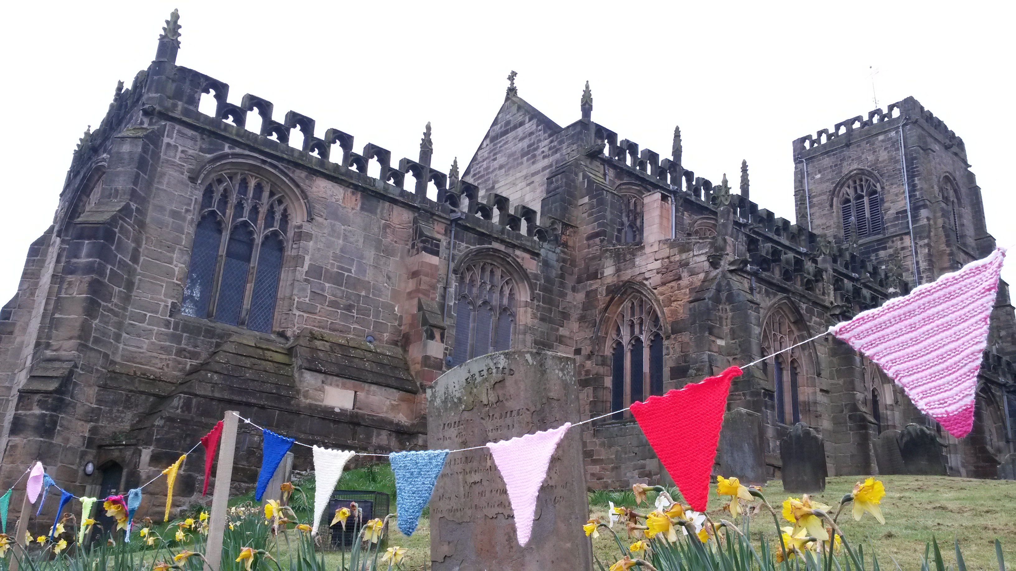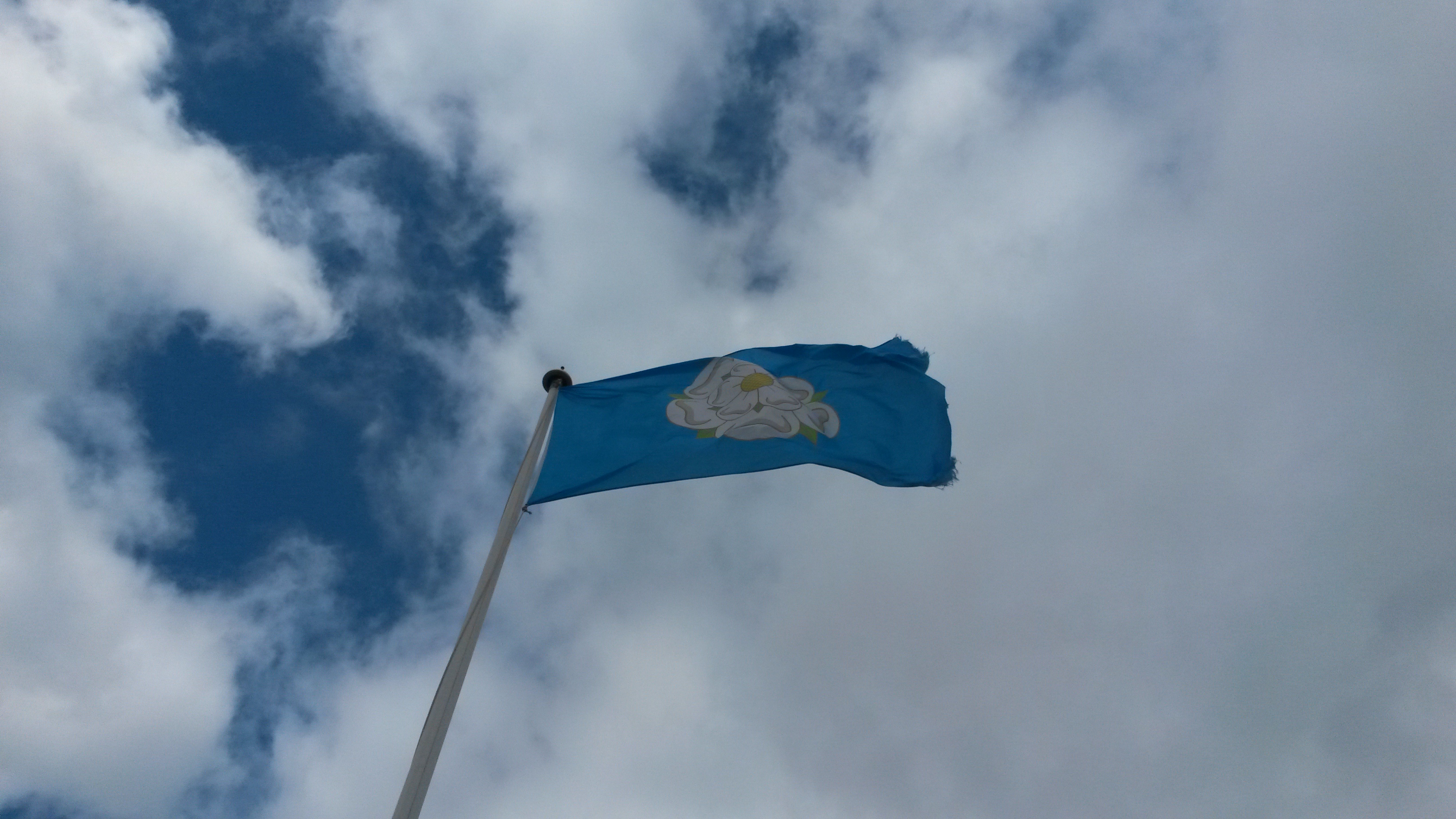 By that time the rest of the ringers had arrived and were making their way to the tower door. I was lagging. I saw another bloke on the pavement whom I had to visit in light of his big blue Yorkshire cape. It turned out to be a flag and he turned out to be the brother of a ringer I know and much twitter dialogue ensued. In the meantime Knottingley ringers started tweeting too and somehow I featured in Yvette Cooper MP’s timeline.