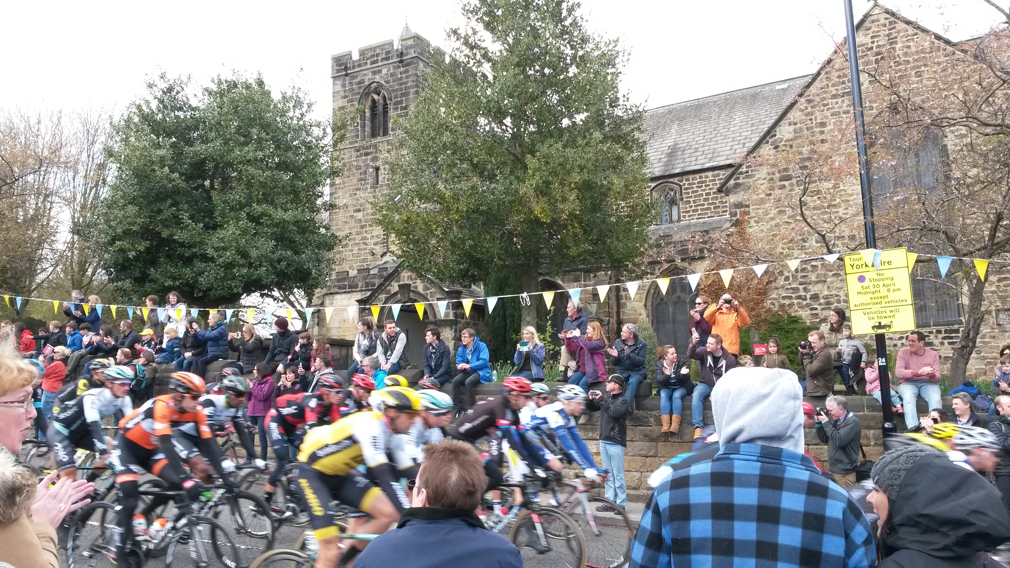 I hadn’t seen the Otley ringers since March 2014 when we recorded the BBC Songs of Praise Tour de France edition but they were just as lively as I remembered. A great band. A pleasure to ring with. We did some more fine call changes and then out to see the race.